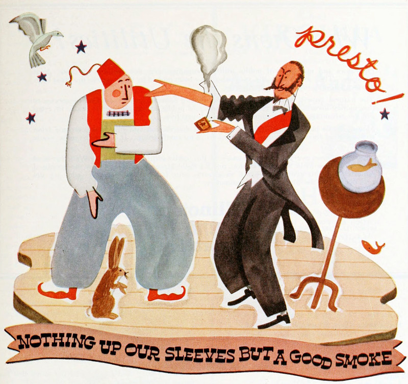 #vintage illustration #vintage ad #magician #smoke #ad