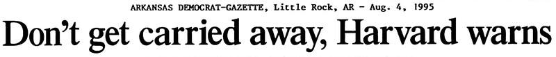 "Don't get carried away, Harvard warns."  (Via UFO Newsclipping Service, 1995.)