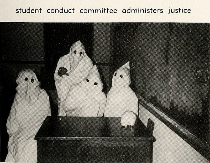 Sheet ghost administrators.  From Union College's 1962 yearbook.  See Of Feeding & Caring For Sheet Ghosts.