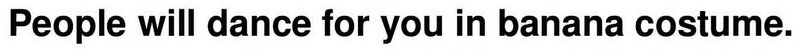 "People will dance for you in banana costume." From something called How to Make Mony [sic] from Fiverr. I guess that's mony as in "Mony Mony" (as sung by Tommy James and the Shondells as well as by Billy Idol).