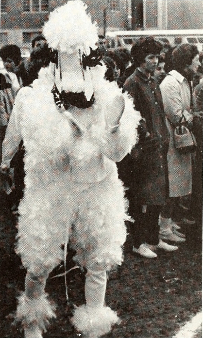 Story of our lives -- you try to take a group shot, but only the costumed character notices the camera. Plus, in answer to your, "Say cheese!" the costumed character invariably says a very different word. From Memphis State's 1963 yearbook.