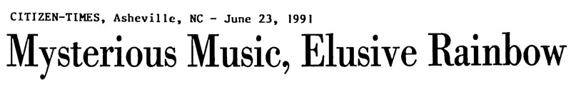 Not sure why mysterious music and an elusive rainbow are newsworthy -- given that we're always listening to obscure music and have found every rainbow we've chased to be evasive, this sounds quite mundane. From UFO Newsclipping Service, 1991.