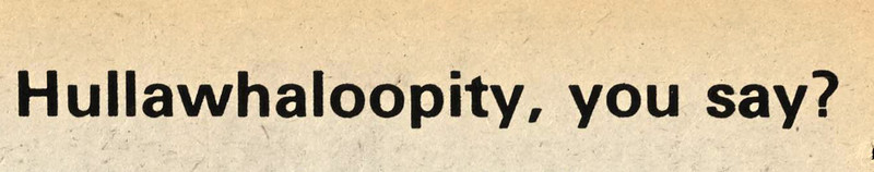 "Hullawhaloopity" is a Googlewhack to this day.  From The Gateway, 1975.