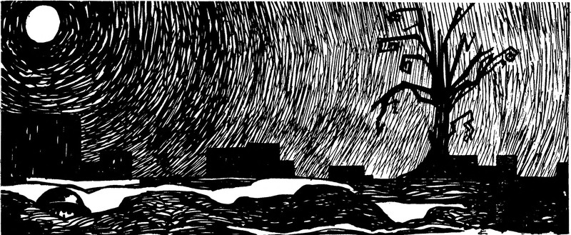#vintage illustration #winter #tree #night