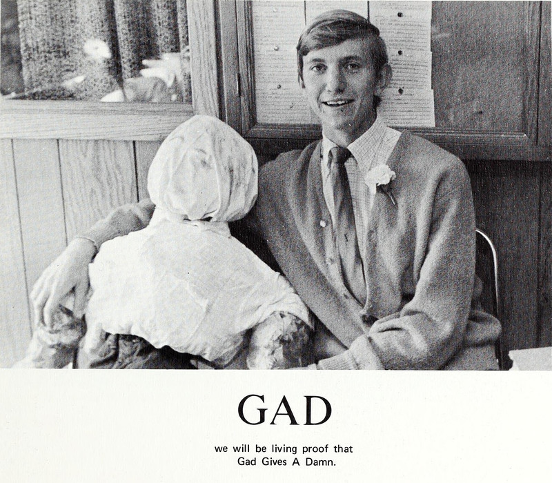 "We will be living proof that Gad Gives a Damn."  From Thornton's 1970 yearbook.