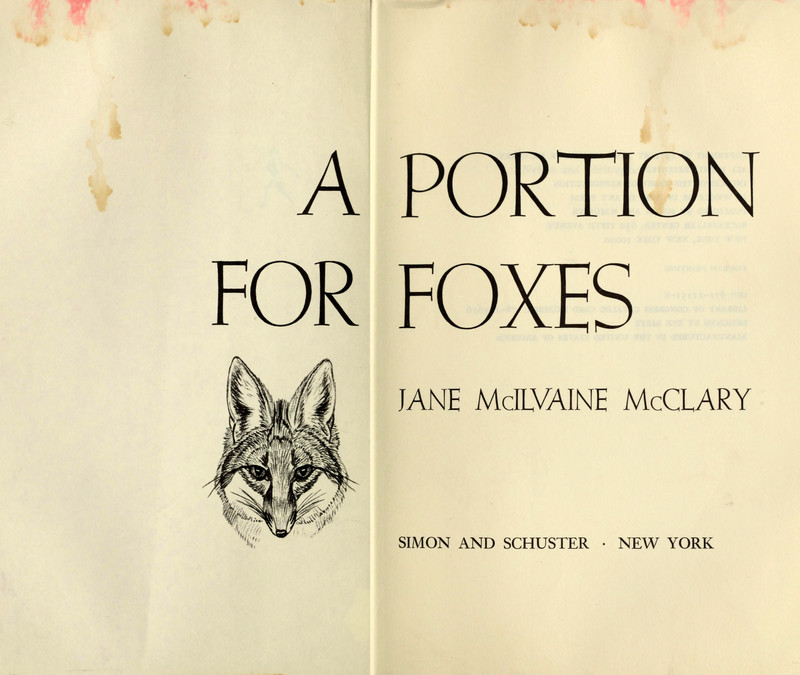 From A Portion For Foxes by Jane McIlvaine McClary.