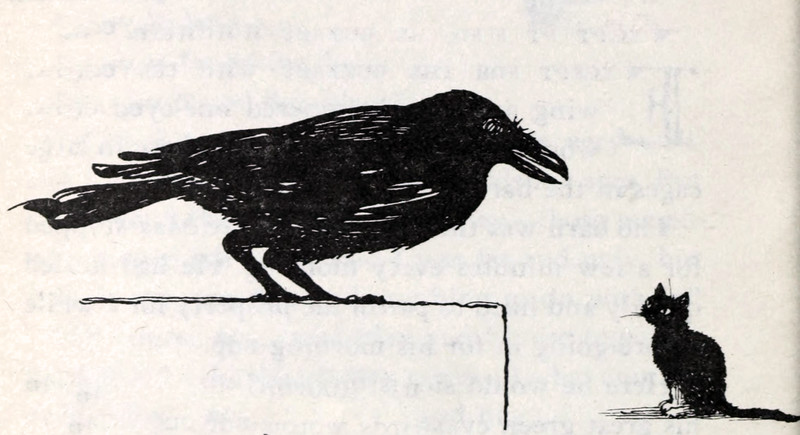 #vintage illustration #black cat #cat #crow #blackbird