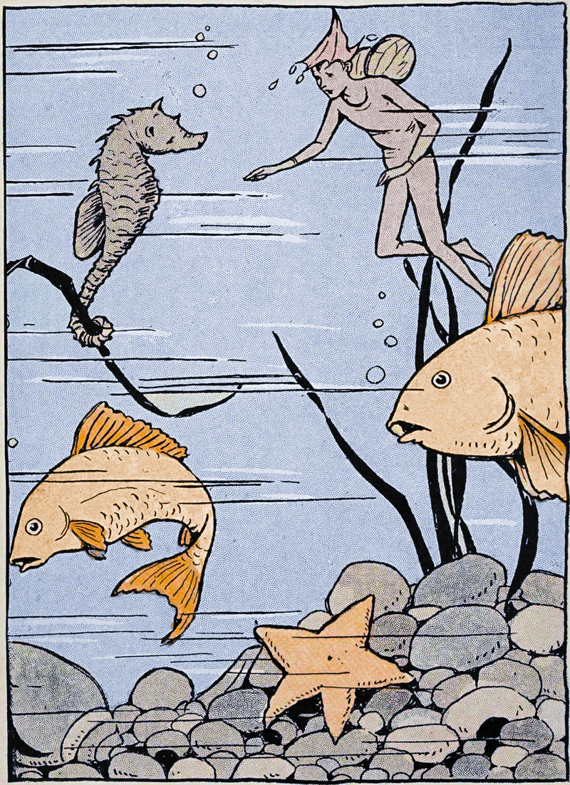 #vintage illustration #fairy #underwater #fish #under the sea #seahorse