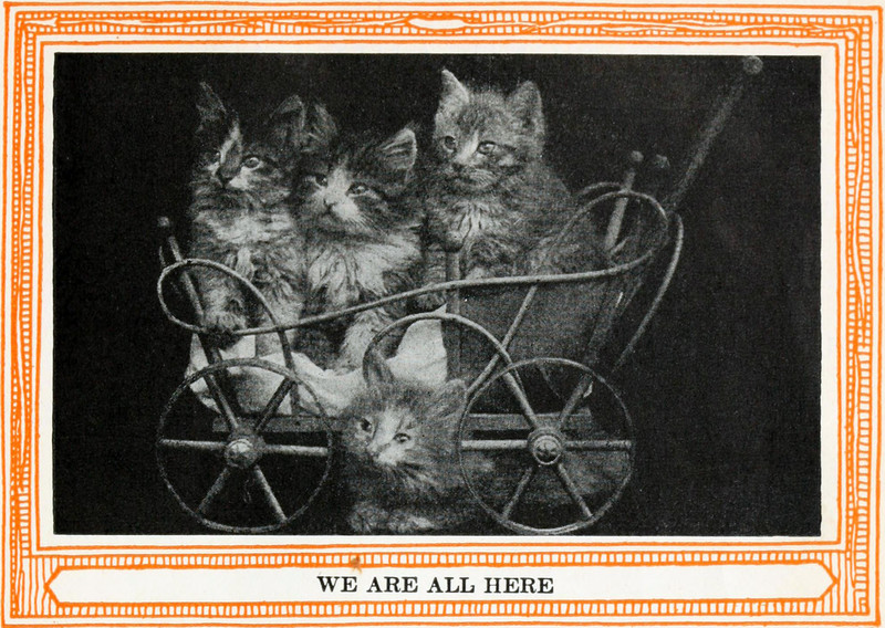 "We are all here."  From Kittens and Cats by Eulalie Osgood Grover, 1911.