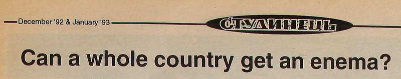 "Can a whole country get an enema?"  (Asking for a friend.)  From Студинець / Studenetz, 1993.