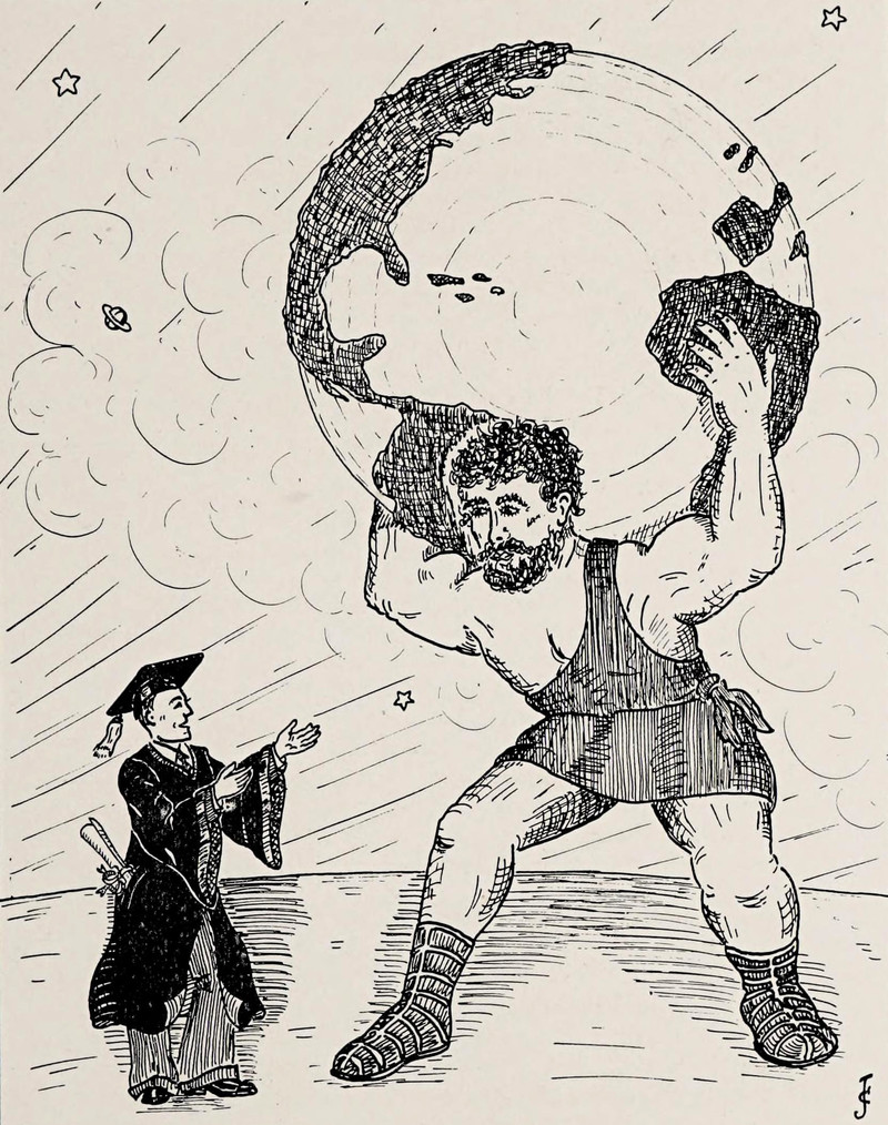 #vintage illustration #world #atlas #giant #earth #vintage yearbook #yearbook #weight of the world #why the earth wobbles