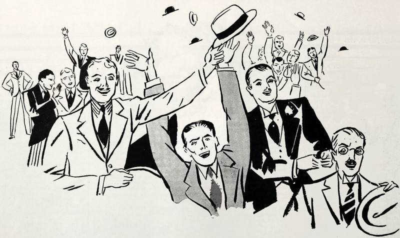 #vintage illustration #vintage ad #vintage men #men #cheering #ad