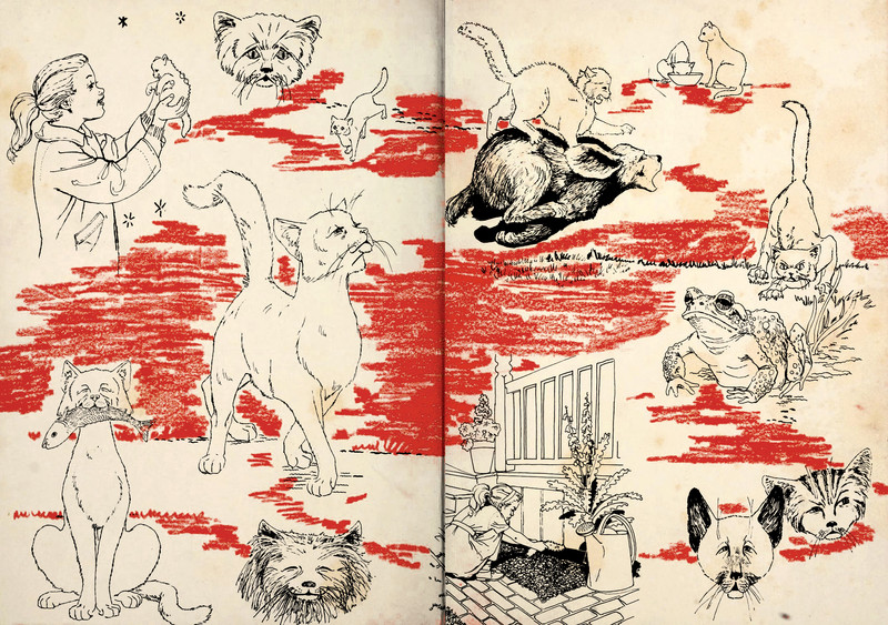 The endpapers from Cats Are For Keeps by Muriel Thompson and illustrated by Howard Larkin.