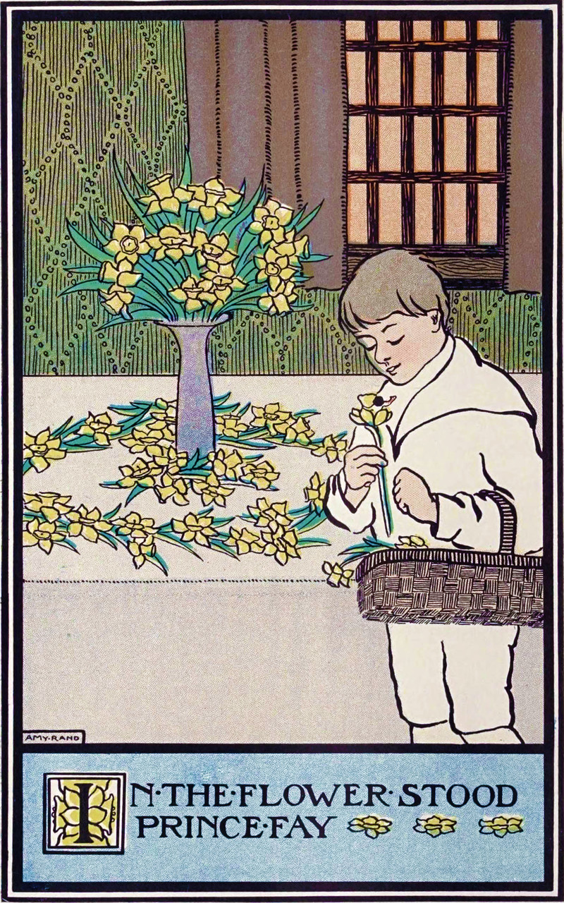 "In the flower stood Prince Fay."  From the rare Twilight Fairy Tales by Maud Booth, 1906.