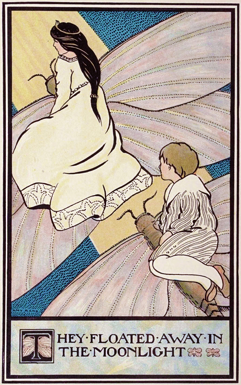 "They floated away in the moonlight."  From the rare Twilight Fairy Tales by Maud Booth, 1906.