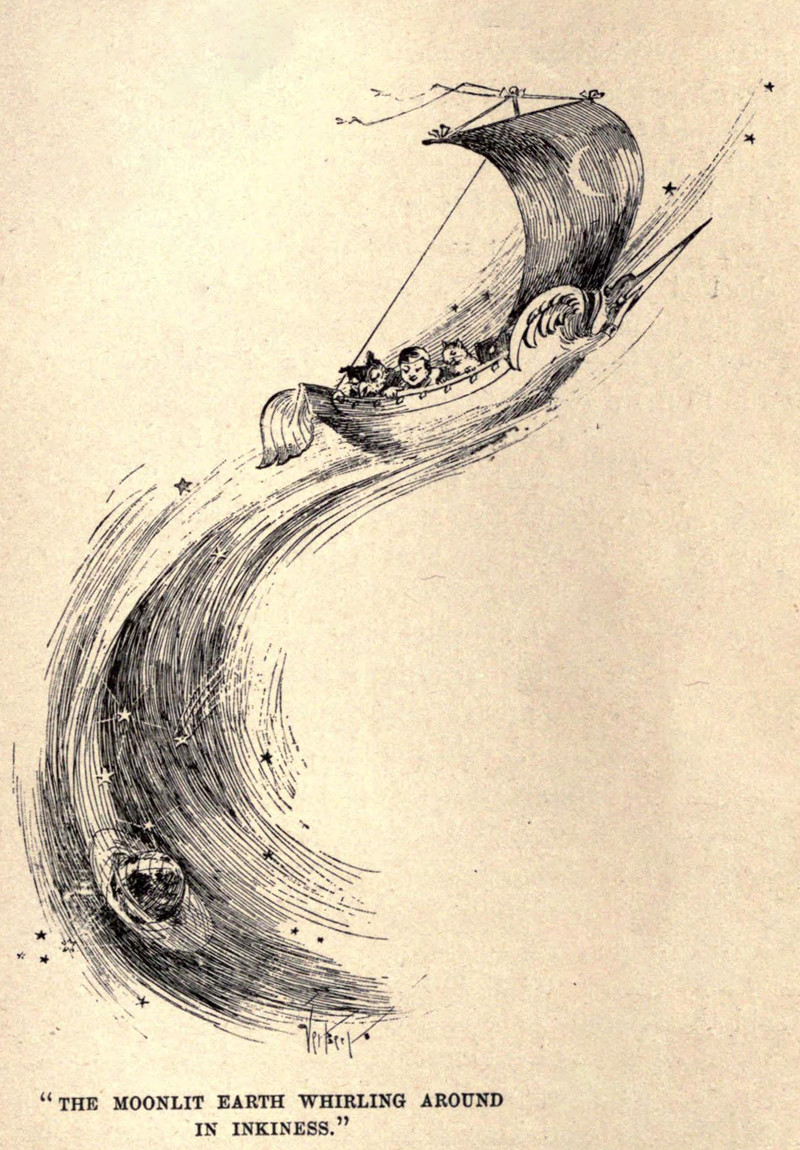 "The moonlit earth whirling around in inkiness."  From The Moon Prince by Richard Kendall Munkittrick, 1893.