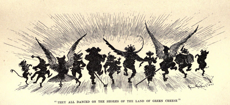 "They all danced on the shores of the land of green cheese."  From The Moon Prince by Richard Kendall Munkittrick, 1893.