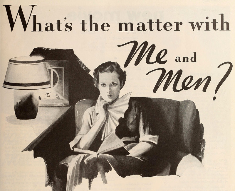 "What's the matter with me and men?"  From The New Movie Magazine, 1935.