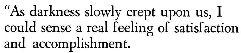 "As darkness slowly crept upon us, I could sense a real feeling of satisfaction and accomplishment."  From Taylor Magazine, 1972.