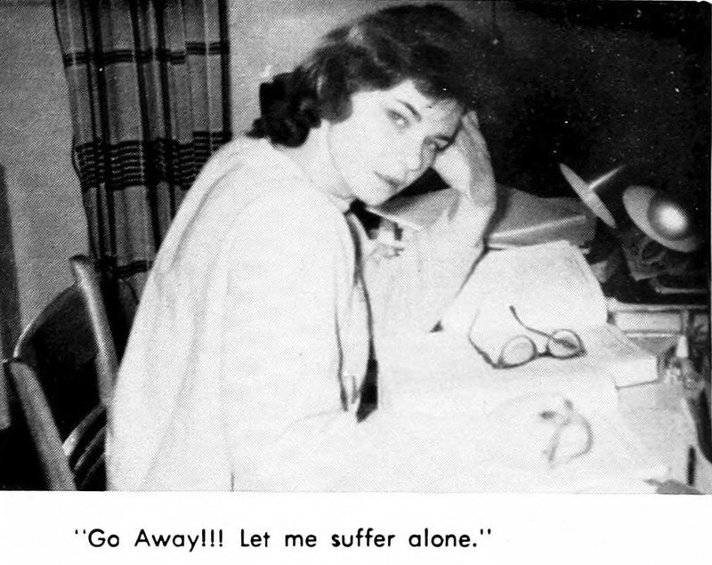"Go away!!!  Let me suffer alone."  From Western Ontario's 1961 yearbook.