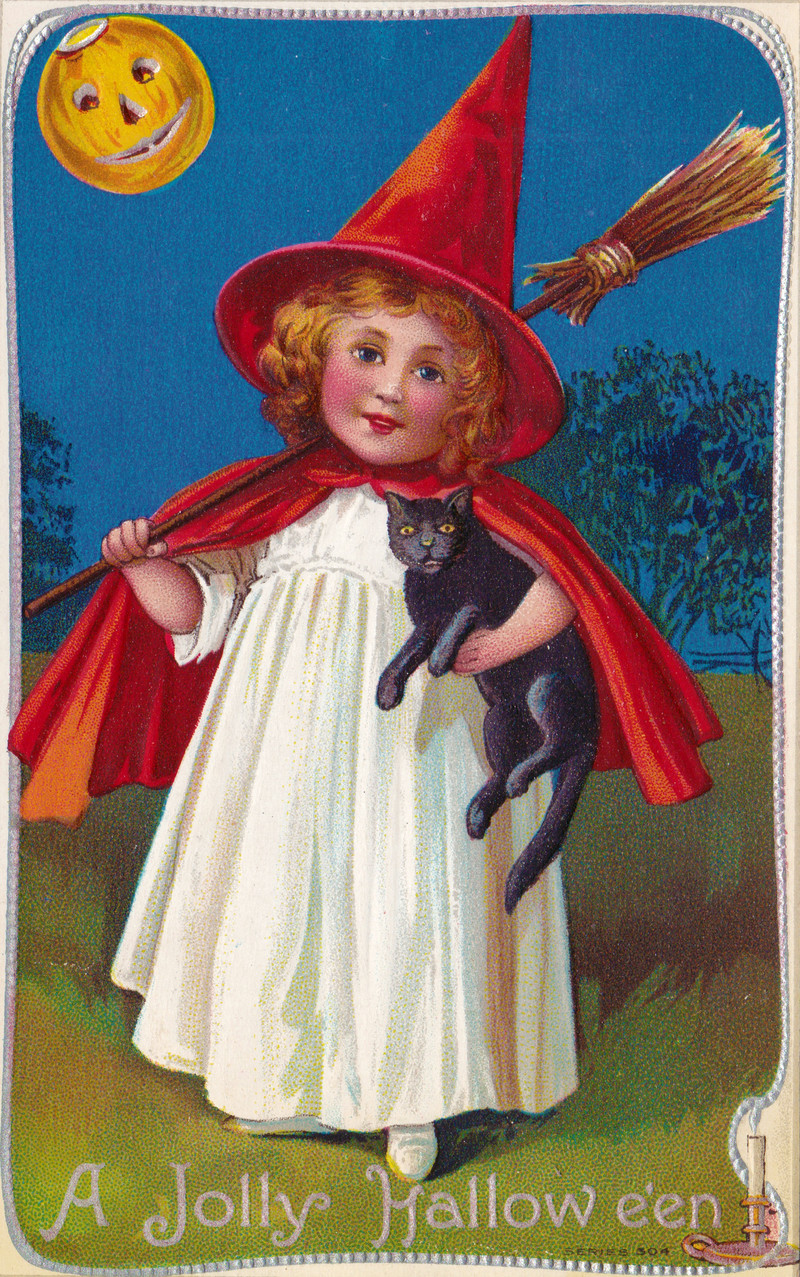 #vintage illustration #witch #cat #hallowe'en #vintage postcard #postcard