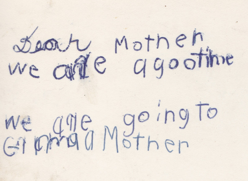 "Dear Mother.  We are ago o' time.  We are going to Grama a Mother."  A spirit message (date unknown), courtesy of UpNorth Memories.