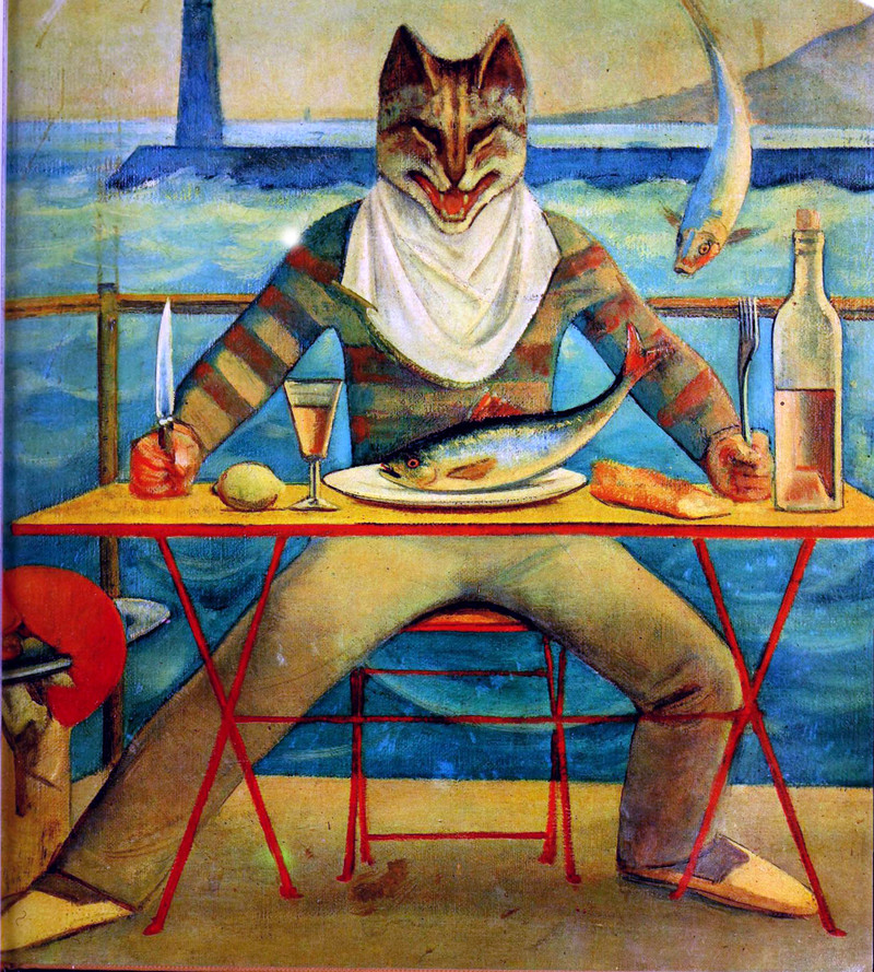 #vintage illustration #anthropomorphism #cat #smiling animal