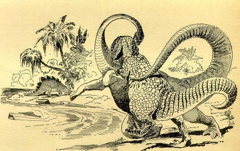 #vintage illustration #dinosaur #animal fight
