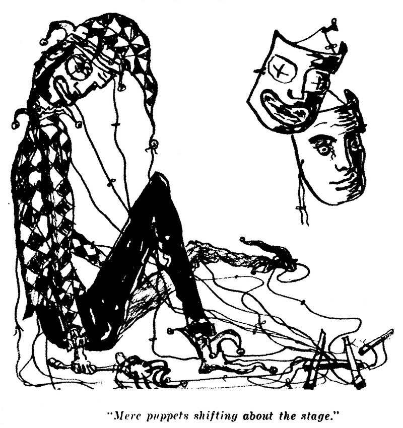 #vintage illustration #mask #jester #puppet #marionette #1960s #comedy and tragedy