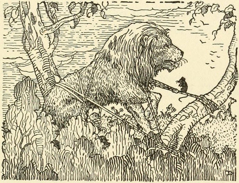 #vintage illustration #fable #lion #mouse