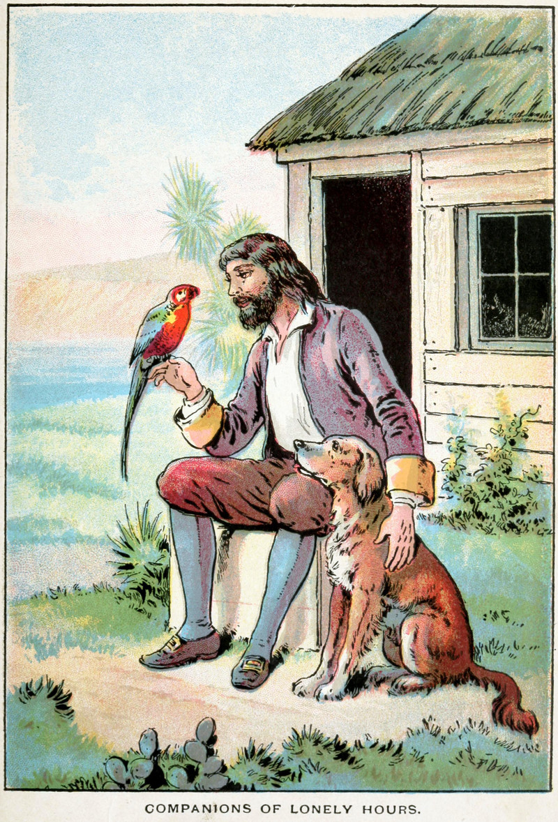#vintage illustration #beard #parrot #dog #animals #robinson crusoe