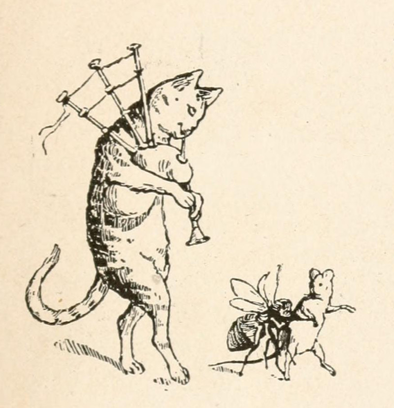 #vintage illustration #cat #musical animal #bagpipes #illustration