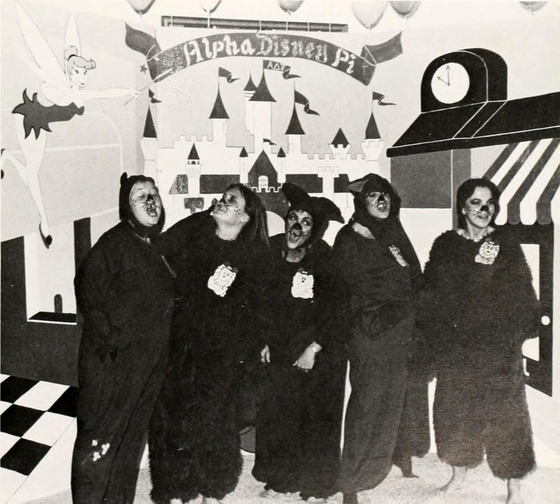 Alpha Disney Pi, a little-known sorority in which country bear costumes are requisite.  From Queens College's 1982 yearbook.