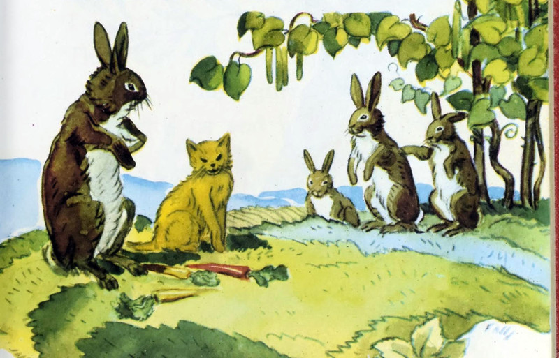 #vintage illustration #cat #rabbit #carrot #1940s