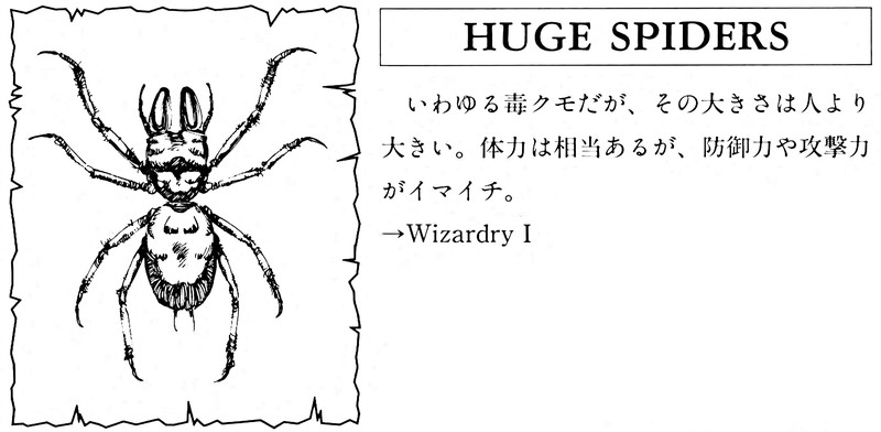 May you not fly in the face of huge spiders today.  From Wizardry IV: The Return of Werdna Handbook.