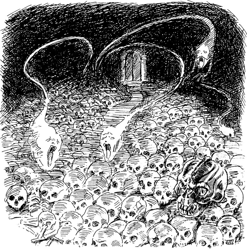 This is why we won't enter any room lined with skulls.  From Zork I Handbook.