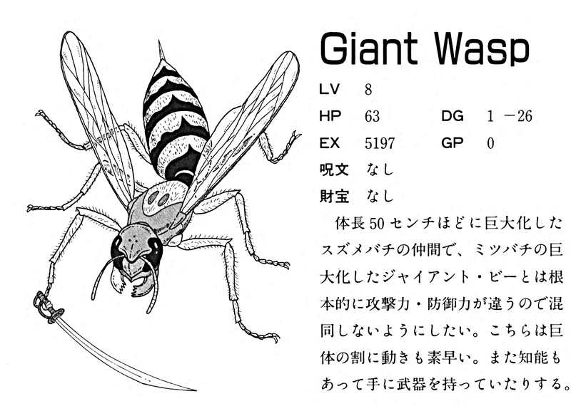 If you've ever been stung by a wasp, you already know they wield swords.  From the Phantasie handbook.