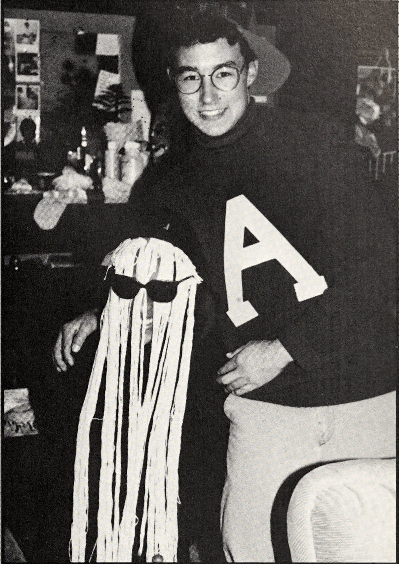Combining a Cousin Itt look with the classic mop wig remains a viable option.  From Tufts' 1990 yearbook.