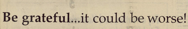 "Be grateful ... it could be worse!"  From Current Sauce, 1987.
