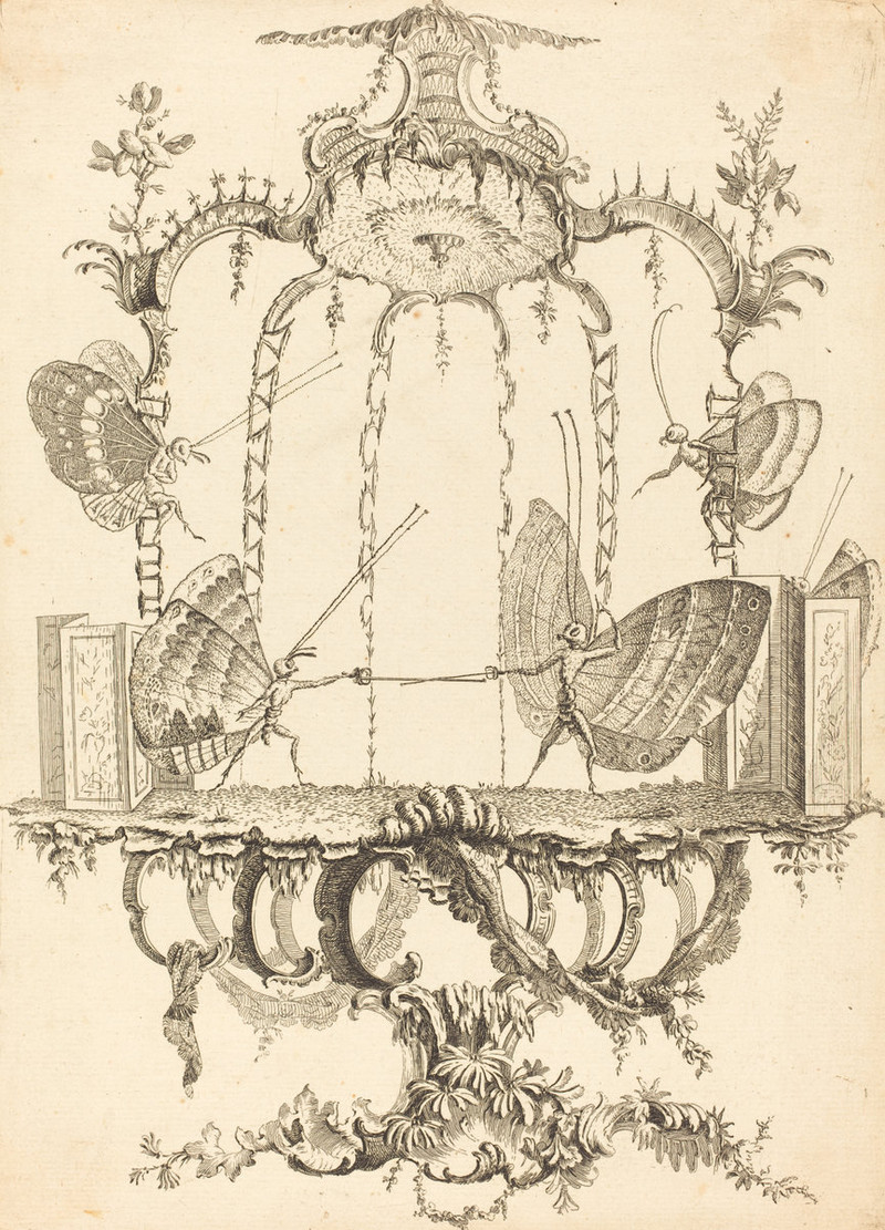By Charles-Germain de Saint-Aubin, in Essay de Papillonneries Humaines (1756).  Via LifeTakesLemons.