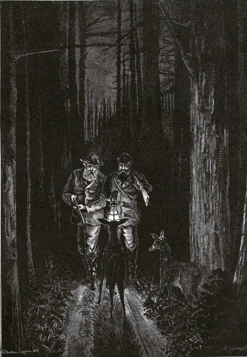#vintage illustration #darkness #lantern #night #hunter #deer