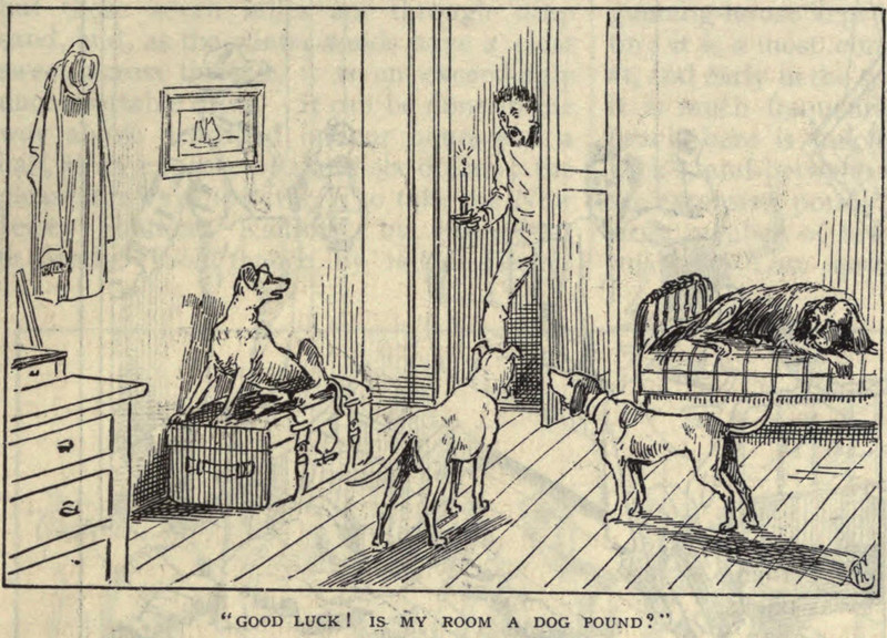 "Good luck!  Is my room a dog pound?"  From Scribner's 1876.