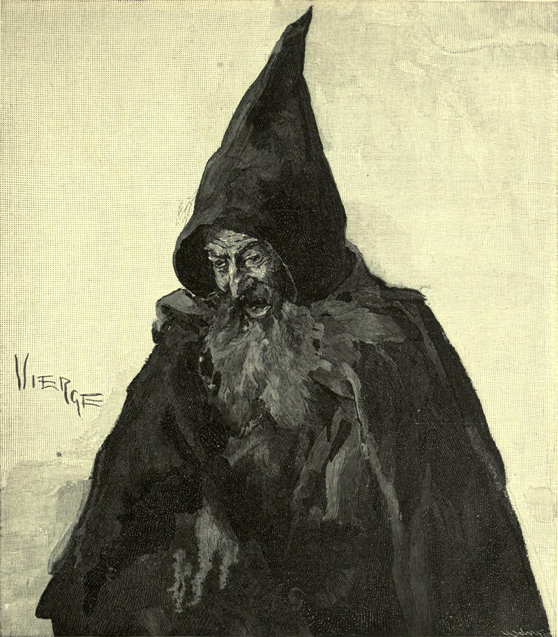 #vintage illustration #wizard #hooded figure