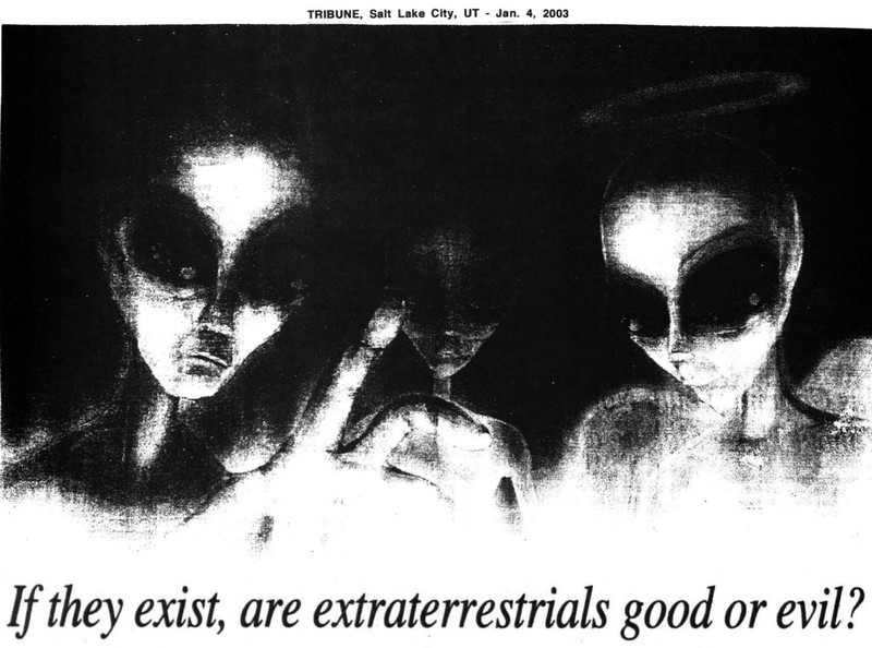 "If they exist, are extraterrestrials good or evil?"  Via UFO Newsclipping Service, 2003.