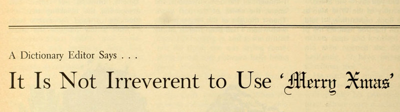 "A dictionary editor says ... It is not irreverent to use 'Merry Xmas.'"  From Together, 1969.