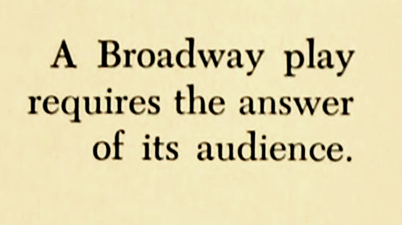We have a problem with Broadway plays requiring answers from the audience, because when we go to the theatre, we wish to be passively entertained. From Together, 1965.