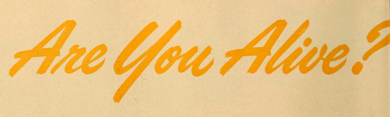 "Are you alive?"  Of course, the great Charles Fort has already answered this, and so did the illustrious Philip K. Dick in his own way.  Headline from Together, 1958.