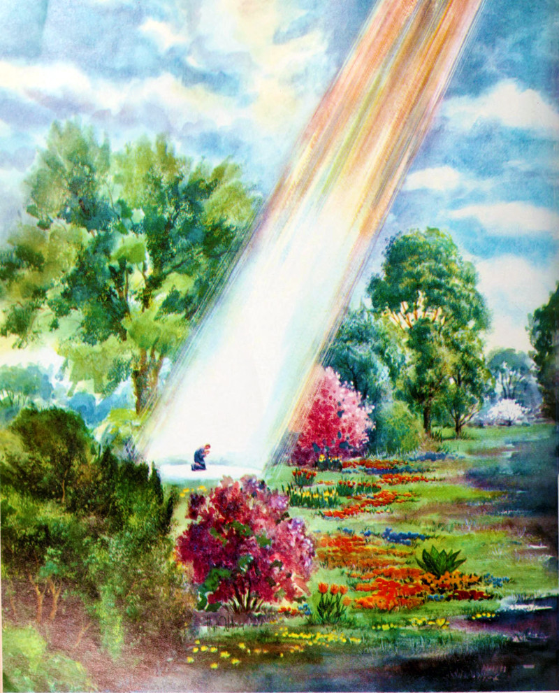 #vintage illustration #ufo #prayer #god #shaft of light