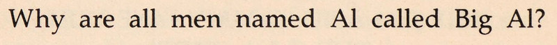 We fact-checked this question. It's true that all men named Al are called "Big Al," and science is no closer to an explanation than it ever has been. From Who Cares About Apathy by Ludlow Porch.