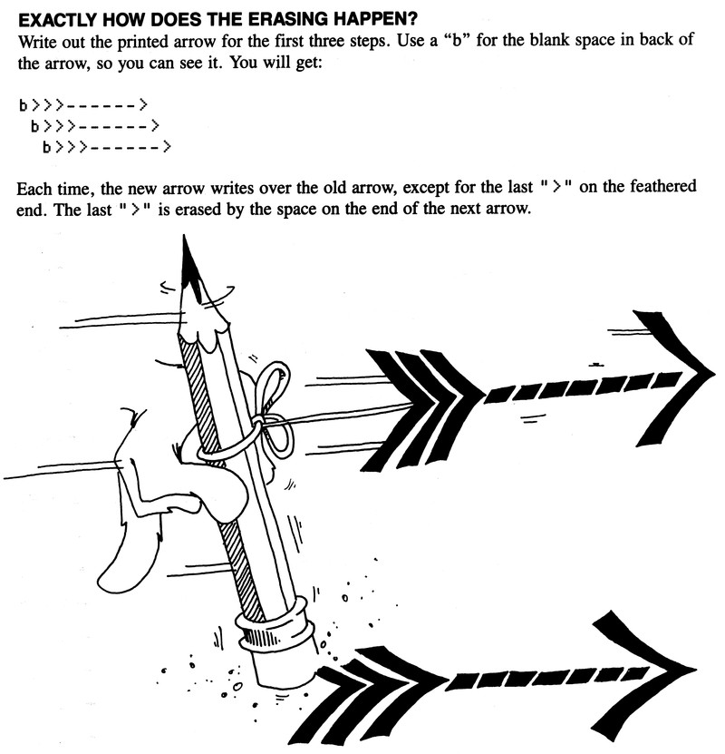 How erasing happens.  From Kids and The Apple by Edward Carlson, 1983.
